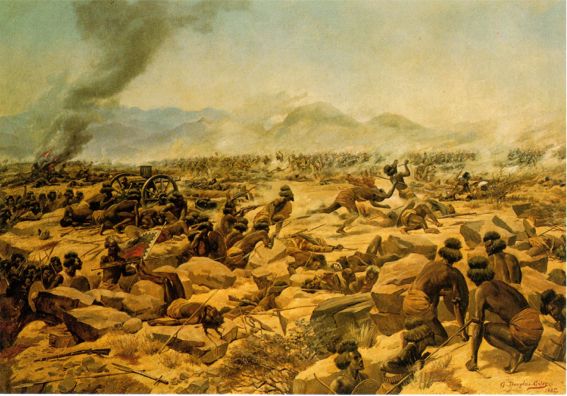 Postcard No.007 The Battle of Tamaai 13 Mar 1884 Oil on canavas by Douglas GilesA body of Dervishes cha...